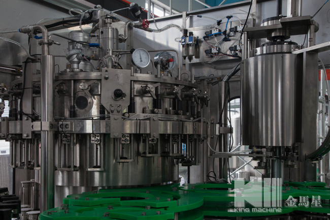 本設備集合了消毒、沖洗、灌裝和壓蓋,合四為一,能夠實現全自動桶裝水旋蓋。沖瓶機使用多種沖品液和消毒液,以保證獲得沖瓶和殺菌效果。消毒液可以循環使用,節省消耗。